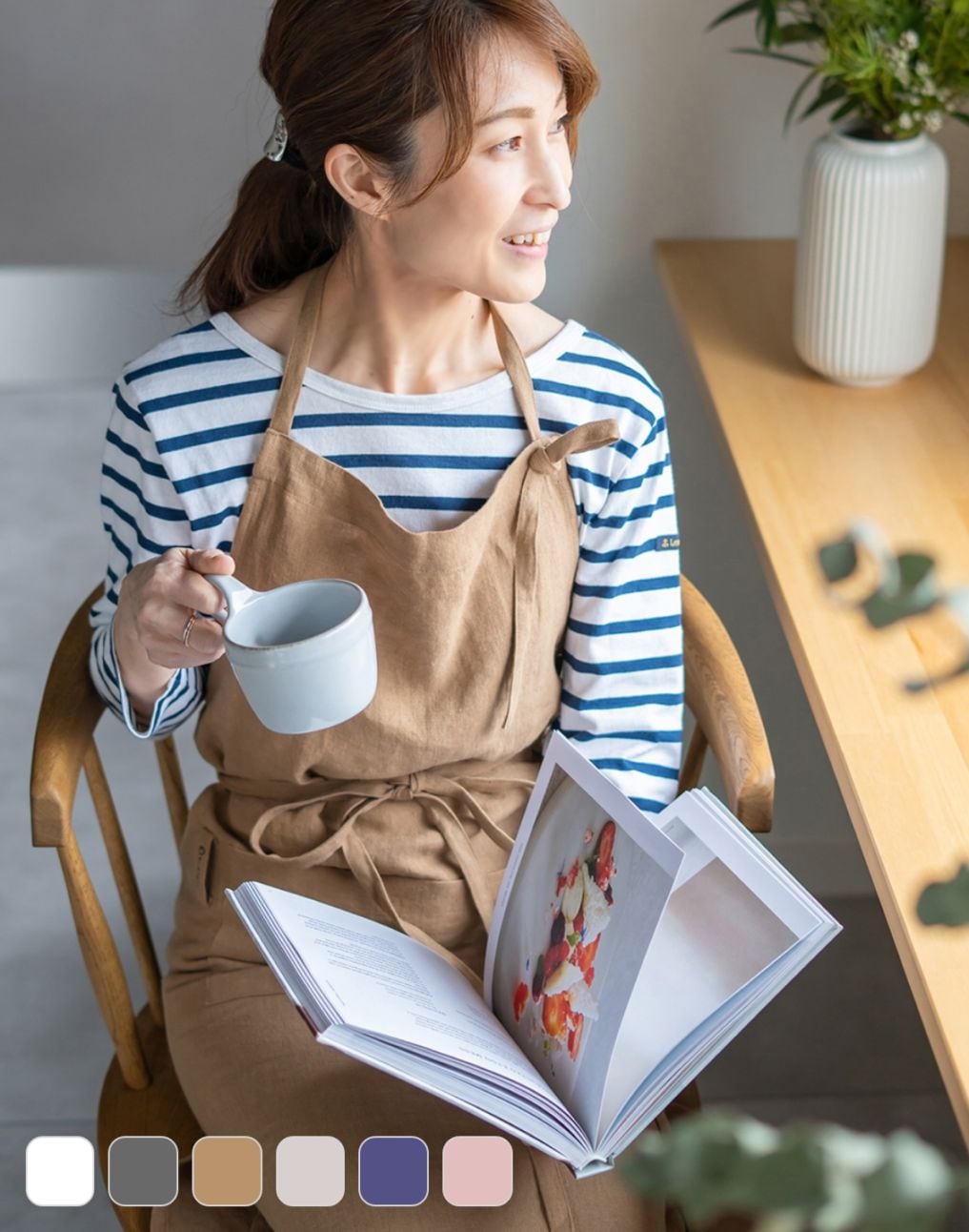 Y-Style 素材にこだわったフランス産リネン100%エプロン【ホワイト/チャコールグレー/ベージュ/ナチュラル/ネイビー/くすみピンク】