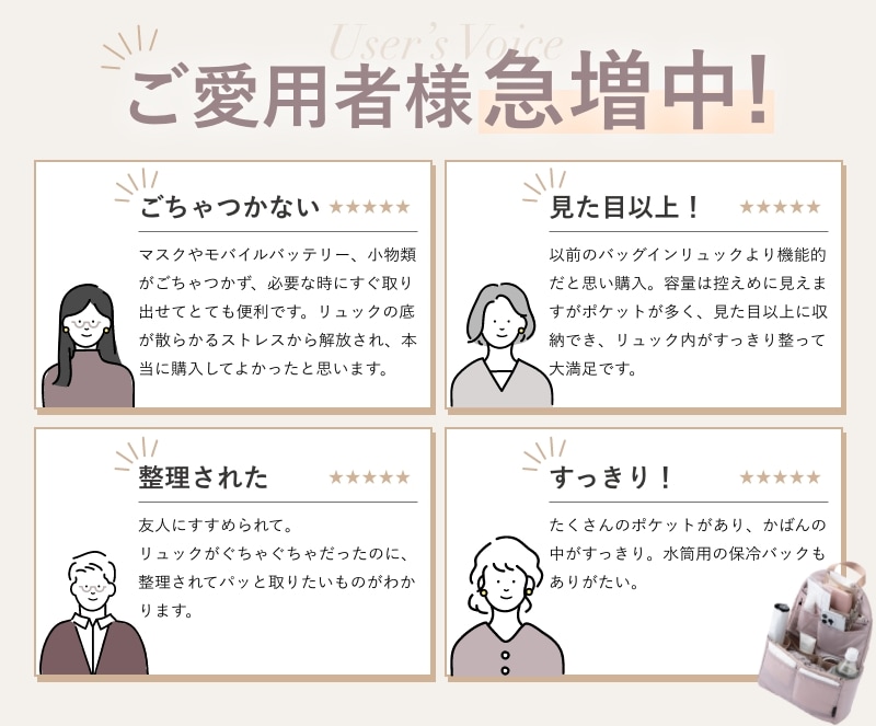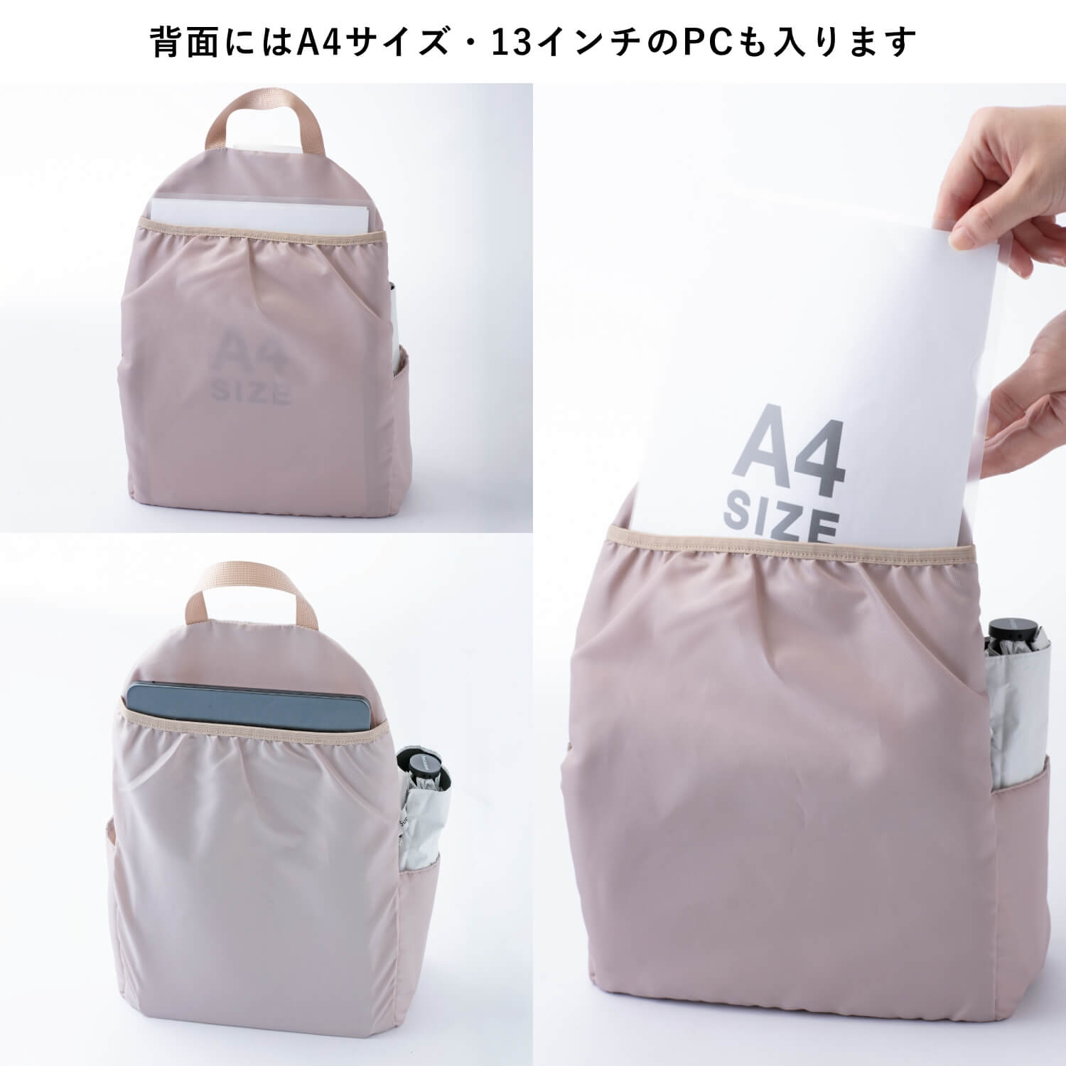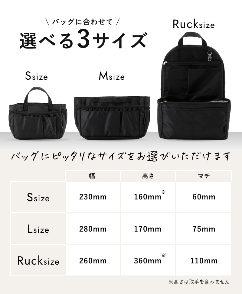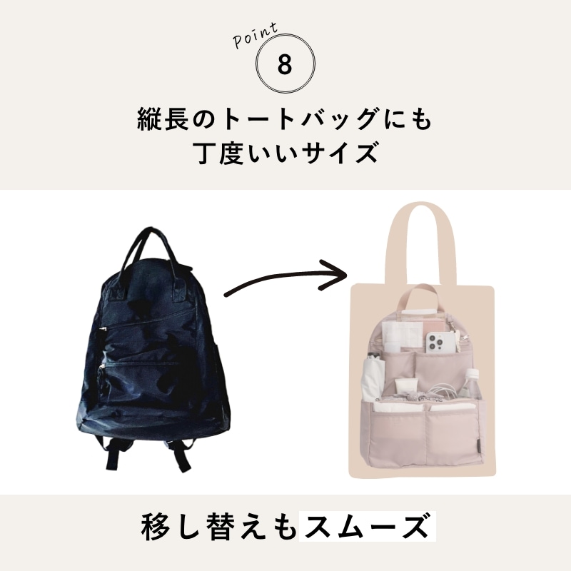 ごちゃごちゃしがちなリュックの中が綺麗にスマートに!どんなリュックにも使える"リュック用バッグインバッグ"です。A4ファイルが折れ曲がらずに収納できるので、教科書やノート、ビジネス用途、通勤・通学にも最適!