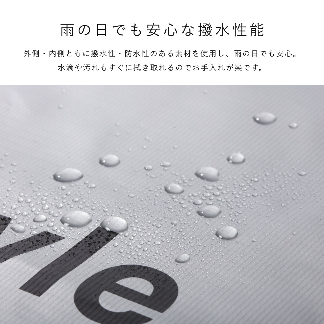 外側素材は、耐久性・耐水性に優れたPVC素材を使用し、雨でも安心。