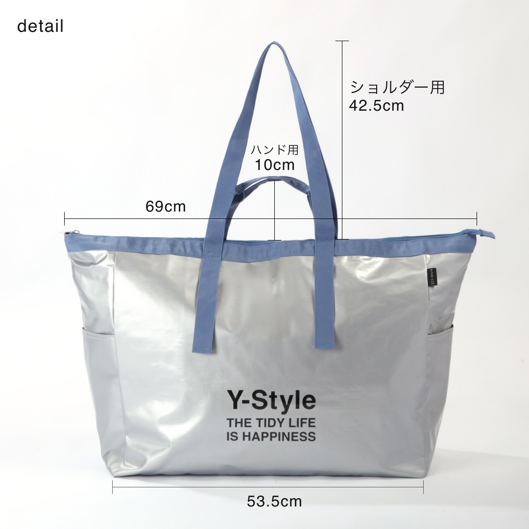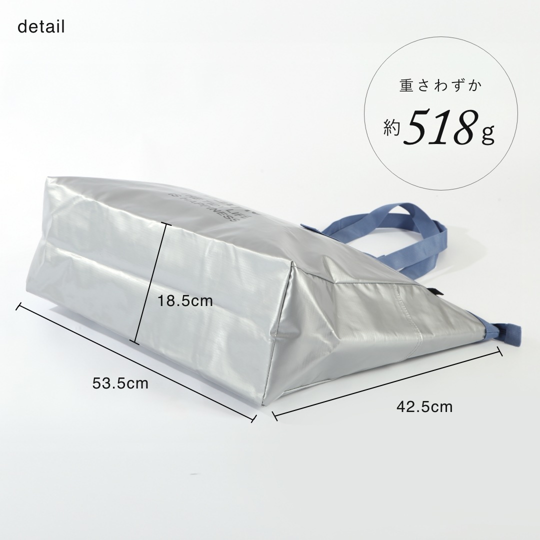 サイズ | サイズ:幅(上辺)69cm/底辺53.5cm × 高さ42.5cm × マチ18.5cm(約42L) |