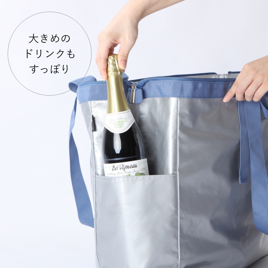 外側のサイドポケットには、ワインボトルなどの大きめのドリンクが入ります。